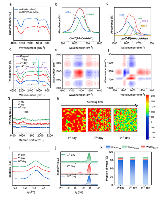 �D5 ����Ion-C-P(AA-co-AAm)�Ă������đ���(a) Ion-C-P(AA-co-AAm)�đ�׃��ه�����׃����(b) ��10%��20%��30%�Ĺ̶���׃�·քe�y��9�����ڵČ��r푑�����(c) ��ƽ������1���ˮ���z������׃���������ԸМy�����ָ�ĉ��s�\�ӣ���(d) Ion-C-P(AA-co-AAm)��30%�Ĺ̶���׃�y���IJ�ͬ��Û�r�g�Č��r푑�������ÿ��8��ѭ�h��(e) ��30%�Ĺ̶���׃�£���0���y����ͬ��Û�r�g��Ion-C-P(AA-co-AAm)�Č��r푑�������ÿ��8��ѭ�h��(f) ������1��7��14���ˮ���z������׃���������ԸМy�����ָ�ĉ��s�\�ӣ��z�y���w�\�ӵĔzӰ�D���ݔ��늉���̖������(g, h) �к���(i, j) Ů����