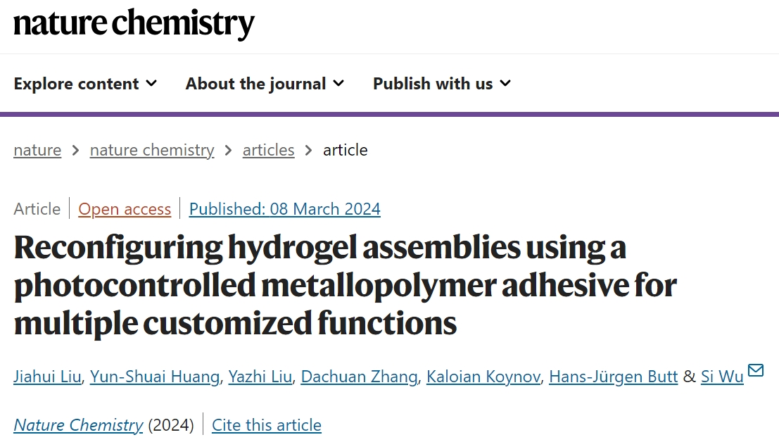 �����ܡ����|���Π�ͳߴ粻ͬ��ˮ���z��Ԫ�M��ճ����һ�N����ܛ�w�C���˵ĺ��㷽�������Džs���y���F���@����飺1��ˮ���z����Ҫ�ɷ���ˮ�����߂���w�ǘӵ�݆�������ı���ɹ�ճ�ϣ�2��ˮ���z�l���w�e���Π�׃���r�ܿ��ܕ��Ɖ�ճ�ό���3��һ���ճ�τ��o���M��ܛ�w�C���˵IJ����ɲ�ж�����ؘ����ɾ��̵�Ҫ�������˿˷��@Щ�y�c���пƴ��˼���ڈF��OӋ�˿���⽻�߷��Ә�����ճ�τ������ڿ���ճ��ˮ���z��Ԫ������⽻�߷���ͨ�^���滥�������ι̵�ճ�Yˮ���z���@�Nճ�τ����m����ճˮ���z���w�e���Π��׃�������⣬����ճˮ���z��Ҫ��ж�����½M�b�r������⽻�߷������ڹ�����Óճ��������������Ŀ���⽻�c���滥����Y�ϵ�ճ�τ��OӋ������ͬ�����Oؐ���l��ճ�τ����OӋ���������OӋ�����ҿ����ճ�τ��ṩ���²�����ԓ������Reconfiguring hydrogel assemblies using a photocontrolled metallopolymer adhesive for multiple customized functions���}Ŀ�l����Nature Chemistry������˼������ԓՓ�ĵ�ΨһͨӍ�������пƴ���һ��λ��