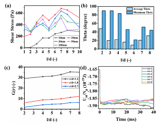 ֮��ͨ�^���w����������С������ͬ�γߴ�Ĵ���Һ�w�w���M�����о�����D5a��ʾ���S���{����ijߴ����ӣ����Б������Ӳ����L����1��2�r�_������ֵ�����^���L���ȵ���r�£����Б�����20nm̎�_����ֵ��Ȼ���½�������ֵ��ͨ�^�^��ƽ���Aб�Ƕȵ�׃���D���D5b�������Կ���ƽ���Aб�Ƕ��S���{����ֱ�������Ӷ��pС���@���Y������20nm��30nm�ļ{����朁��f������ӽ���Փ��ѽǶȵġ��D5c��5d�@ʾ���S��ֱ�������ӣ��ۼ�����u���͡����Կ�����������ֵ��20nm�r�_������C���˴˕r���^�Y���������õľo���ԡ���20nm�r�����ڃAб�ǶȺ��^�Y���ľo���Զ�̎�����à�B�����Б����_�������ֵ���c�oֹ��B�����103%����������322Pa��ߵ�654Pa����