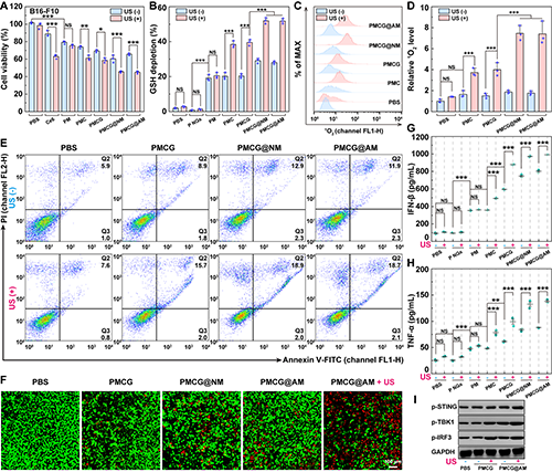 �D6.����ͬ̎����B16-F10 �����ģ�A�����������D����B��������GSH ���İٷֱȼ���C-D��1O2���_ˮƽ������ͬ̎����B16-F10 ������E��������r��ʽ�����D����F������Ⱦɫ��CLSM�D������ͬ̎����B16-F10 ����ጷŵģ�G��IFN-�� ����H��TNF-������I��������STINGͨ·���P����WBԇ�Y���D��