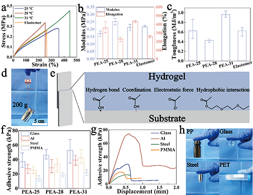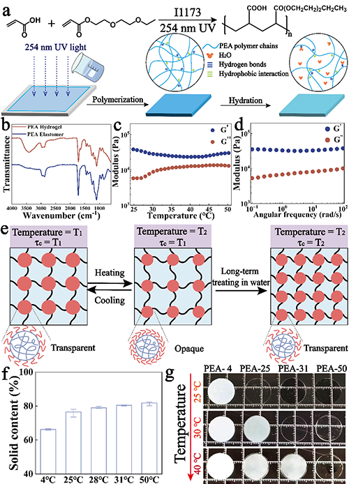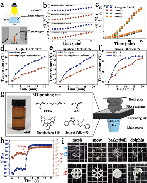 ���ڣ�����W�w誽��ڈF�ͨ�^�����Hˮ���w��ϩ�ᣨAAc���c���о��т�朵���ˮ���w��ϩ��2-��2-��������������������EEEA�����ۣ��Ƃ��˾ۣ�2-��2-����������������ϩ������-��ϩ�ᣩ��PEA��ˮ���z���_�l�˾��Ѓ������W���ܣ��������ȡ�0.45 MPa�����L����440%���g����0.96 MJ m?3�����߿�Ҋ���^��Tlum��92.69%������̫ꖹ��{��������Tsol��82.15%�������D׃���ʣ�<4 s���Ϳ������{����c��4~50 ��C�������ܴ������⣬PEAˮ���z����ͨ�^���֣�DLP����̎��3D��ӡ�ͺ��ε�ˮ���^�̫@�ã����Ԍ��F���Ի��OӋ�͜ض��{����ͬ�r���x�ӽ��x�����׃ɫPEAˮ���z�@���Ĝض��������ܣ��Ķ����F�����ܴ��ضȵ��挍�Č��r�O�y��ԓ�о����}�顰Pure Physical-Crosslinked High-Strength Thermochromic Hydrogel for Smart Window and Energy Conservation����Փ�İl���ڡ�Advanced Functional Materials���ϡ�