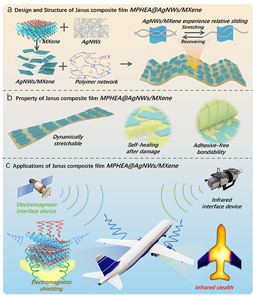 �D1 Janus��(f��)�ϱ�ĤMPHEA@AgNWs/MXene���O(sh��)Ӌ(j��)�������Y(ji��)��(g��u)������������ԣ����졢���ޏ�(f��)����ճ���������ڼt���[����늴����η���đ�(y��ng)�á�