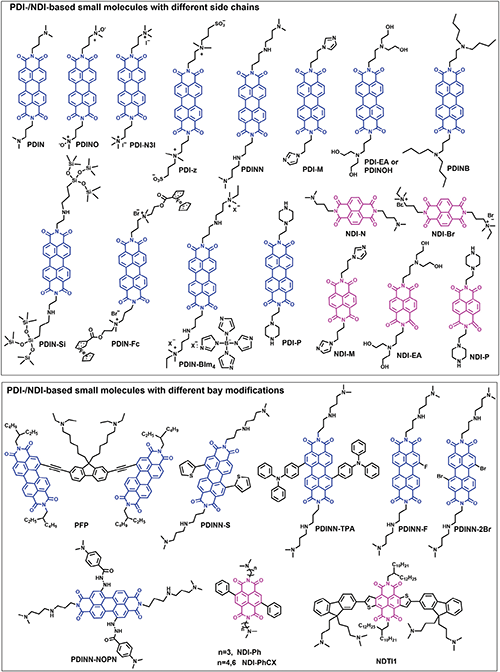 Figure 6. Chemical structures of partial organic materials for external n-doped hybrid blends (including organic�Corganic and ZnO-organic) in inverted OSCs.