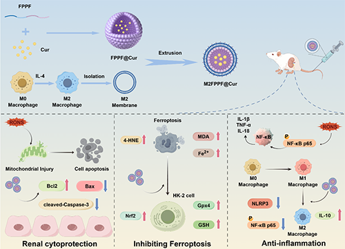 ���գ����_��W/�H�����tˎ�a�I���g�о�Ժꐴ�ȫ���ڈF����ڼ���Ĥ�����ķ����{���d�w�ă������_�l��һ�N����AKI�ί��Ķ�ܷ����{���f��ϵ�y�{��RONS�������Ferrostatin-1��Fer-1��ͨ�^4-�Ȼ������ᣨ4-PBA���͎r����ǣ�Fuc���c���S�أ�Cur���M�b������ROS푑��{���f��ϵ�y��FPPF@Cur�����Mһ��Ϳ��M2���ɼ���Ĥ��M2M���γɶ�ܷ����{��RONS�������M2FPPF@Cur�����OӋ���ڌ�Cur�����f�͵��܂����I�K��