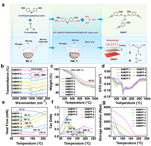 �D2. a) SMBPFs�Ƃ�ʾ��D��b) SMBPFs��FTIR���V��c) SMBPFs��TGA������d) SMBPFs��DTG������e) SMBPFs��DSC������f-g) SMBPFs��DMA������