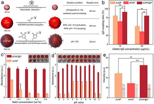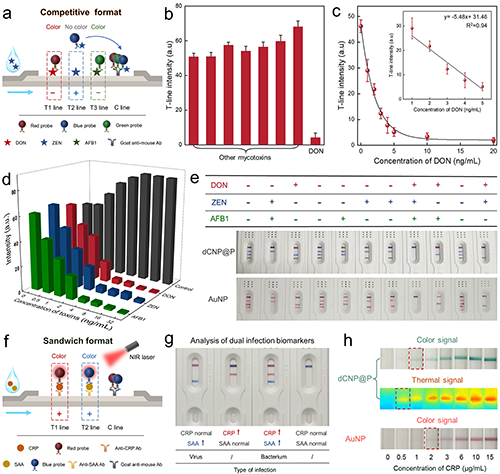 ���P������������Colored Cellulose Nanoparticles with High Stability and Easily Modified Surface for Accurate and Sensitive Multiplex Lateral Flow Assay�����}�ڡ�ACS Nano���ϰl���о�Փ�ġ�mLFAs����ͬ�r�z�y��N�����������ߙz�yЧ�ʣ����ͳɱ��͕r�g����߷������ȵȃ��ݡ�Ȼ����̽��w�����ɫ��һ����ͬ��Ʒ֮�g�ĸɔ_�Լ����خ��Ժ͵��`���ȵ��ӄ݇�����K��mLFA�ďV�����á�ԓ�о��Ƃ���һ�N���п��{���ɫ�ľ۶�Ͱ�������Ⱦɫ�w�S�ؼ{���w����dCNPs@P��̽ᘡ����Ⱥϳ��˳ߴ���{�������w�S�ؼ{���w����Ȼ��ͨ�^����Ĺ��IȾɫ������Ⱦ�Ϸ���ؓ�d���w�S�ؼ{���w�����棬�ٰ���һ�ӿ����c���w�Y�ϵľ۶�Ͱ�Ϳ�ӡ�dCNPs@P�@ʾ���Ƚ�{�����Ӹ��ߵ��@ɫ���ȣ�߀���и��ߵ����}�Ϳ��O��pHֵ�ķ����ԡ�����dCNPs@P��mLFA���ɹ������ڙz�y�����еĶ�N������أ��̓ɷN�װY�����־��ĸ�Ⱦ�^�֡�ԓ�о���mLFA��̽ᘲ����Ƃ��ṩ���µ�˼·�ͷ�����