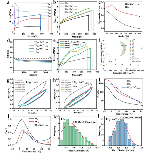 �D2. a����ͬEHL���������w�����쑪(y��ng)��-��(y��ng)׃������b����ͬZn2+���������w������������c��TE30��TE30+Zn2+1:400�Ĝ���ȡ�d����ͬZn2+���������w�đ�(y��ng)���ɳ������D��e��TE30+Zn2+1:400�ڲ�ͬ��(y��ng)׃�½�(j��ng)�^300�ΙC(j��)еӖ(x��n)����đ�(y��ng)��-��(y��ng)׃������f������PTA�ď����w�����W(xu��)���ܱ��^��g��h��TE30��TE30+Zn2+1:400��30%��(y��ng)׃��ѭ�h(hu��n)����3000�κ�đ�(y��ng)��-��(y��ng)׃������i����(ch��)��ģ����E�䣩��j���p�����ӣ�tan ������ľ�|(zh��)���cP��TA-IA�����|(zh��)֮�g��������Č��ȈD��k��TE0��l��TE0+Zn2+��