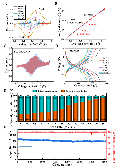 MnSA@PN�M�b��Zn//MnSA@PN늳�CV������D2���ʬF��һ�����@������߀ԭ�����@�cMnSA@PN늘O��PN������߀ԭ������Mn2+���ܽ�/���e��Zn2+��Ƕ��/ÓǶ���P��ͨ�^�Uɢ������^�������ڒ������ʵ����w����О顣�Y����������늺ɴ惦��ͨ�^��ݙC�ƶ����ǔUɢ�C�ưl�������S���������ʵ����������ؕ�I�ʳ��m���L����5 A g-1����ܶ��������^3600��ѭ�h�������������ʞ�86.8%�����F��������ѭ�h������