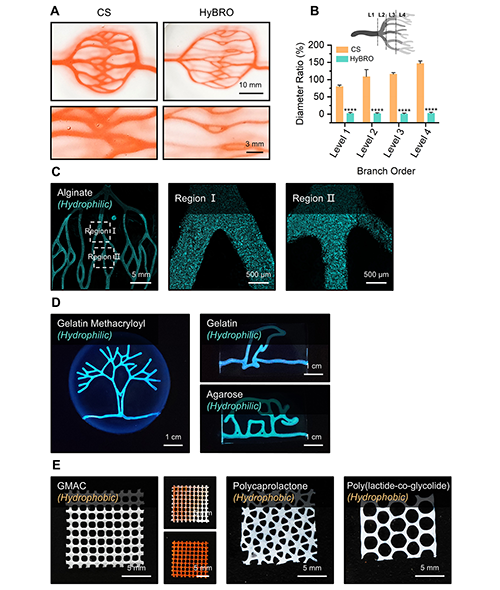 �b�ڂ��y�������H��ˮ�����g���x���������n�}�M�Mһ����HyBRO���ԔUչ�����ڶ�N�����Բ��ϣ�����C��V�V�����������Y���@ʾ��HyBRO���ں������c�����z����֬�Ǻ�GelMA�ȳ�Ҋ�Hˮ�������з�������ͨ���Y����ͬ�r�����������ϸʾ��ǡ��ۼ������;�����-�u�����Ṳ�������ˮ�Ի�����ͬ�ӱ��F�����ó������������⣬HyBRO���H�m����GM��������ϣ����ڂ��y��PVAģ��Ҳ���@��������Y������ȣ��Mһ��ӡ�C��ԓ�����ڲ�ͬ����ƽ�_�µ��m���ԡ�