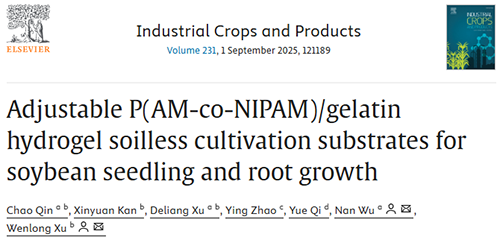 ���ɳ��m�r�I�������������L�����ˌ��o������ϵ�y���dȤ�����У�ˮ���z���o��������|�������õ���ˮ�ԡ���ˮ�Ժ����ȿ��{�����c�����кܴ�đ��Ý��������|��W���ϿƌW�c����ϵ�������n�}�M���YԴ�c�h�����̌WԺ����n�}�M��ˮ����ľ�WԺ�wӢ�n�}�M��������Industrial Crops and Products���ϰl���}����Adjustable P(AM-co-NIPAM)/gelatin hydrogel soilless cultivation substrates for soybean seedling and root growth�����о������¡�ԓ�F�ͨ�^�{�ؽ�����ȣ��ɹ��Ƃ��˾��п��{��϶�Y�����Cе���Ⱥ����ȵ�P(AM-co-NIPAM)/���z�ͺ�ˮ���z�������䑪���ڴ�����ğo�����ࡣ�о��l�F���������ܶȵ�ˮ���z���H���Ѓ����ęCе���ܺͱ�ˮ������߀�ܞ������ĸ�ϵ���L�ṩ����ĭh�����@�����M����ϲ��ֺ�ϵ�İl����ͬ�r�����ڸ�ϵ�����Ķ�ֳ�����⣬ˮ���z�������Ԟ�ӑB�^��ֲ���ϵ���L�ṩ�˱�������o������ϵ�y�ă����OӋ�ṩ����˼·��ԓ�о���ɳ��m�r�I���`�ṩ��һ�N��Ч���ɿص�ˮ���z���|��Q�����������m����ˮ�YԴ�ͻ��|�����������е��r�I���a������ԓ�����õ��ˇ�����Ȼ�ƌW����22472073, 22102067, 41977039�������c���H�����Ŀ��42320104006����ɽ�|ʡ�����F��Ŀ���Y����2023KJ213����