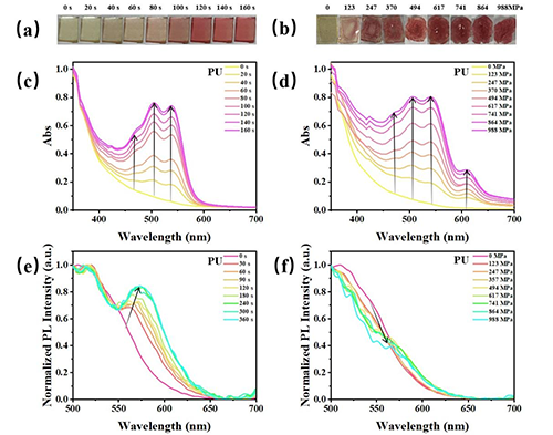 ����׃ɫ�О�������⣨365 nm�������£�ABPX@PU�аl(f��)�����ݭh(hu��n)�_(k��i)�h(hu��n)����(y��ng)�������_(k��i)��-�]�ϑB(t��i)��ABPXOC�������F(xi��n)��472��506��540 nm���շ��567 nm�ɹ�l(f��)��壬�ɫ�Ĝ\�Sɫ�u׃?y��u)?/span>�tɫ���D2a��������ABPX@PMA-PU�У�PMA�W(w��ng)�j(lu��)�ĵ������w�e�@�����Ɔ��ݭh(hu��n)�_(k��i)�h(hu��n)������׃ɫ��(qi��ng)���½����ɫ׃�������Sɫ���\��ɫ�����D3a����