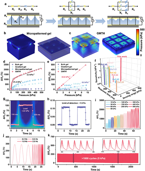 ˮ���z����������Ƥ�w�ް����������Y�����Ȳ��t�����ݶ�ģ����ʹ��߂䳬�߉����`���ȣ�53.6 kPa-1������푑���110 ms���͌����̣�0-500 kPa����ͬ�r�������g���g��26.22 MJ m-3�����D2����ԓ���z���w�ġ����ӡ�����Դ�����wƤ�w���mɢ�l�ğ��������ˮ���zͨ�^���Ч���Ɍ����w�����D������ܣ��������Ӊ���Ч��ֱ�ӡ��oԴ���،�������֪�D�����̽�y�����̖�����o���ⲿ��늣��D3���������w���|���w�r�����ϵğ�Uɢ������ͬ�����������z���˜ز�׃���ٶȣ�늉�׃���ʣ��@����ͬ�����������X��ԭ�톢�l��ͨ�^�O�y���z늉�׃���ʣ����w���ڶ̶�80����������40���룩�R�e���������ԣ��O������˲����R�e�ٶȺ�Ч�ʡ�