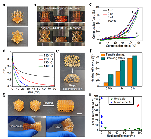 ᘌ�(du��)�@һ����(zh��n)���㽭��W(xu��)�Ǿ�܊���������F(tu��n)�(du��)ͨ�^(gu��)���W(xu��)���ӽY(ji��)��(g��u)�O(sh��)Ӌ(j��)�����۰�����ϩ������(sh��)֬��ͬ�r(sh��)���������I�����������I�ɷN��(d��ng)�B(t��i)���F(tu��n)�������������f(xi��)ͬ���ã��ڹ�̻��W(w��ng)�j(lu��)�гɹ���(g��u)���˶༉(j��)���I�Y(ji��)��(g��u)���D1���������ڴˣ�ԓ�����w����չ�F(xi��n)��Խ�����W(xu��)���ܣ����쏊(qi��ng)�Ȟ�49.6 MPa���g�Ԟ�158.5 MJ/m3�����ڌ�(du��)�Ռ�(sh��)�(y��n)���Y(ji��)�ϼt����V��С��X�侀ɢ��ȱ����ֶΣ��D2�����о��C��(sh��)���������I��������M(j��n)�˶༉(j��)���I���γɣ��@��������������ɢЧ�ʡ�ͬ�r(sh��)������߀�l(f��)�F(xi��n)�����������^(gu��)���а��S�Y(ji��)���О�ij��F(xi��n)��ԓ�О��M(j��n)һ�������˲��ϵď�(qi��ng)���c�g�ԡ����⣬ԓ����߀��߃�(y��u)���Ŀ�ȱ�ݡ������������Լ����ٻ؏����ԣ��D3�������������������I�Ą�(d��ng)�B(t��i)���ԣ���ӡ������130 ��C�¼ӟ�2С�r(sh��)���Ɍ�(sh��)�F(xi��n)��Ч�ޏ�(f��)�����ޏ�(f��)Ч�ʸ��_(d��)95.6%���c�F(xi��n)�й�̻�3D��ӡ������ȣ�ԓ���������쏊(qi��ng)����ͬ��ޏ�(f��)�����w��10�����ϣ��ɹ���(sh��)�F(xi��n)������(qi��ng)�g�c���ޏ�(f��)�ąf(xi��)ͬ�y(t��ng)һ���D4����