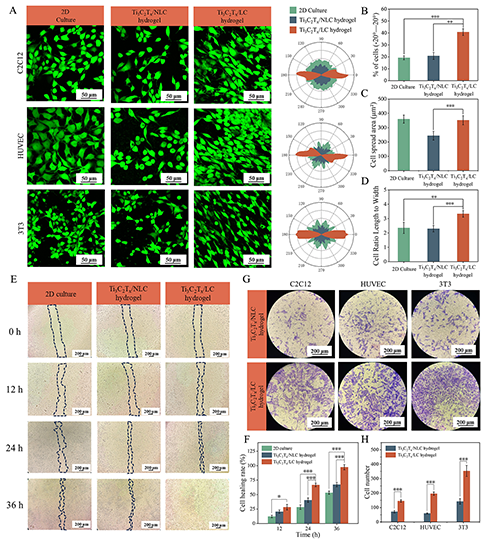�D4. Ti3C2Tx /LCˮ���z���������к��w�Ƶ��{�����á�(A) C2C12��HUVEC��3T3�����ڶ��S���桢Ti3C2Tx /NLCˮ���z��Ti3C2Tx /LCˮ���z�����B(y��ng)��Ĺ��۽��D������������ֲ��M�нy(t��ng)Ӌ������C2C12����ȡ����(B) -20�㡪20�㷶���ȣ�(C)�����չ��e��(D)�����L���ȵı�����(E) C2C12�������ی��Y���D���(F)����������(G) C2C12����Transwell���Y���D���(H)����������