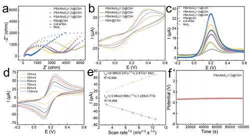 ���ڣ��m��������W�����ܽ����cţС�۸������I㕵Ŀ��ЈF������Է����R�e�о��I��ȡ����Ҫͻ�ơ��о��Fꠄ����Ե��OӋ�_�l��һ�N����PBA/MoS2@CSH���|�Y�Y��������ˮ���z늻��W��������ԓ���������]�˸��N�M�ֵąfͬ���ã��ԫ@�ý�������Ժ͌�ӳ�x�����R�e���ܡ�ͨ�^��������ؓ�d����CoFe PBA��MoS2ؓ�d������������ˮ���z�У��D1�������Ú���������ˮ���z���е����w�h�������c�����g�Ě��I����ã����F�ˌ�ɫ���ጦӳ�w�IJ���R�e��ͨ�^CoFe PBA/MoS2���|�Y�����Ķ������늈����@�����M������D���^�̡�ͨ�^EIS��CV��DPV����CoFe PBA�cMoS2֮�g�Ľ���늈�ʹ����늻��W���������������D2a��2b��2c�����ҷ�ֵ����c�������ʳʾ����Pϵ����������������늻��W�^����ռ���������D2d��2e����ѭ�h�����Ԝyԇ�п��c�������S���r�g��׃����늉���̖�o���@׃�����M������PBA/MoS2(1:2)@CSHʮ�ַ������D2f���������ܵ����P��ՓӋ��Y��������L-Trp�������������w���W���|������������PBA/MoS2(1:2)@CSH�ı����ϣ��Ķ����F��Trp��ӳ�w�������R�e���D3a�������P��ՓӋ�����CoFe PBA/MoS2������ڏ��ҵ�����ã����¸�����ӵķe�ۺͽ���늈���IEF���Įa�����D3b��3c�����@������Trp�������^���е�����D�ƣ����Mһ���U�����ֵ����������R�eЧ��������ˮ���z�ͮ��|�Y֮�g�ąfͬЧ������ͨ�^����ˮƽ�������{�����c��߶Ȯ��|�Y���ąfͬ���Á팍�F���ܼ��ɺ�����ͻ�ơ�