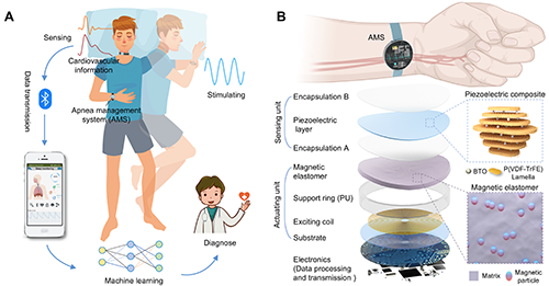 ���գ����Ͻ�ͨ��W��S����ڈF�����۳��д�W��������ڈF��Լ��Ĵ���W�A���tԺ��ͬ�_�l��һ����ډ�늂��кʹŏ��w�ӵĺ�����ͣ�O�y����һ�w���]�h����ϵ�y��Apnea management system, AMS�������F�ˌ�˯�ߺ�����ͣ�¼��ĸ�Ч�\����ԓϵ�y�����аl�ĸ����܉�늏ͺϲ��ό���Ѫ�ܠ�B�Č��r�O�y�����Y�ϙC���W������ӳ������B����̽�y��������ͣ�¼��r���l�ŏ��w����������ʩ���|�X�������T�������{��˯�ˣ����������ͣ���D1�����Mһ�������о��Ќ��аl��AMS���R���ϵĶ���˯�߱O�y�x�ęz�y�Y���M���ˌ��ȷ�����AMS�܉_�R�e������ͣ�¼�������ʩ�ӷ����̼��������ͣ�õ����@�����⡣����о�ͻ���˂��y�O�y�����Ć�һ���ܾ��ޣ���˯�ߺ�����ͣ�����������������\��һ�w���ṩ�˿Ʌ���������ԓ�����ԡ�A wearable all-in-one obstructive sleep apnea management system with flexible piezoelectric monitoring and soft magnetoelastic stimulating�����}�l���ڡ�Matter���ϣ�Matter, 2025, DOI: 10.1016/j.matt.2025.102323�������Ͻ�ͨ��W�����ʿ���Ĵ���W�A���tԺ�����t������۳��д�W��������ʿ��Փ�Ĺ�ͬ��һ���ߣ����Ͻ�ͨ��W��S����������S�Y����������۳��д�W�����������Փ�Ĺ�ͬͨӍ���ߡ�ԓՓ�ĵõ�������Ȼ�ƌW�����Ĵ�ʡ��Ȼ�ƌW��������Ͻ�ͨ��W���A��������Ӌ�����Ŀ��֧�֡�