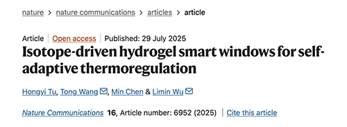 ԭ��朽ӣ�Hongyi Tu, Tong Wang, Min Chen & Limin Wu, Isotope-driven hydrogel smart windows for self-adaptive thermoregulation. Nature Communications, 2025.