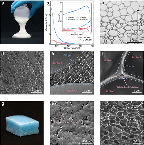 �D2 G-CNF/SC��ĭ���Ƃ��c��������a��G-CNF/SC����ĭ����Ƭ����b��CMCNFs��ɢҺ��G-CNF/SC����ĭ��ճ��-����������������D��ģ��-�l��������(c)��W�@�D���ʾ���﷽���^�ɣ��ϣ�����Ӿo�ܚ��ݣ��£�������Κ��ݣ�����d��e��G-CNF/SC����ĭ��d���͝���ĭ�Ѓɂ����ݵĽ���̎��e�������SEM�D��f��G-CNF/SC��ĭ�м��������ƽ�_߅��ͨ����SEM�D��g��G-CNF/SC��ĭ����Ƭ����h��i��G-CNF/SC��ĭ���棨h���͙M���棨i����SEM�D��
