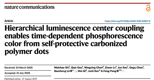 �����о��ɹ�����Hierarchical luminescence center coupling enables time-dependent phosphorescence color from self-protective carbonized polymer dots�����}�l���ڡ�Nature Communications���ڿ��������֘I��W��ʿ�о���ʷ�������һ���ߣ��α��������������h���ڞ鹲ͬͨӍ���ߡ�ԓ�о��õ��ˇ��ҽܳ�����ƌW����32225034����������Ȼ�ƌW������22308028���������У�������ИI���M����Y���Y����JCYJ202501�����Ŀ���Y����