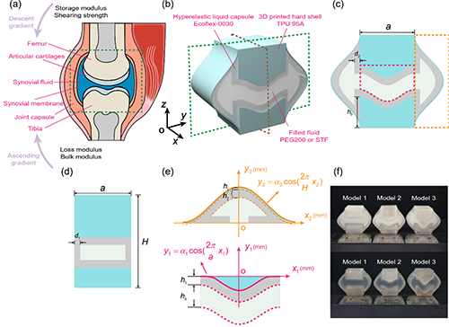 ���գ��Ї��ƌW���g��W���d�����ڈF������ϥ�P���Y�����l�������һ�N�������������������ϵ�y��Imitation Knee Joint Structure, IKJS����ԓϵ�y��3D��ӡ�ı����⚤�c����������Һ��STF����������ǻ���ɣ�����ģ�M�˹ǡ�ܛ���c��Һ�ąfͬ���ã��ڄӑB���s������Լ����ٛ_���ȶ�N�d�ɗl���£�IKJS�����F�����������������c�������ܣ����F���ڌ���׃�ʷ����ȵ��m���Ժͷ����ԡ�