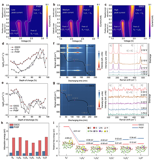 GSCCͨ�^�ֲ��ߌ�늹�ܗ朶Ρ������I�W�j�̈́ӑB����λ�c�����ĸ�늴����ԭh���܉��ڌ��ضȷ���������늳����ܡ��������늳ص�늻��W�����^�̣�GSCC����Ч������Li2S4��Li2S2�D���^�̣�ԓ�^�̱�ҕ�����ʛQ�����E��������ԓճ�Y�����Ѓ����Ĝض��m���ԣ��D4������ˣ���ʹ�ژO�˜ضȭh���£�����GSCC�����늳����ܷ������ۣ�����-30����0.1 Cѭ�h60�κ������o˥�p����60����0.5 Cѭ�h300��ÿѭ�hƽ������˥�p���H��0.095%�����⣬ͨ�^�����ض�-���B-�����ӷ����������Mһ��̽����GSCC�оۺ����cҺ�B���ك��ݻ��a�Ĺ����C�ơ����ߜحh����Һ�B���ٳʬFҺ�w�Ԡ����늈��ӵ���׃�w�����������O�ṩ���S���ĄӑB��λ�c�����ۺ���ͨ�^�O�Ի��F��λ���ò��H����Ч����Һ�B���وF�ی��µĻ���λ�c�pʧ��߀���Mһ��������늴����ԣ��͜حh����Һ�B���ٳʬF���w�Ԡ��Cе���Ȟ����O�ṩ�����õĄ���֧�Σ����ۺ���t��ͨ�^��������O���������a��Һ�B�������̌��µĻ���λ�c��Ч���½����}��߀���ṩ�x���S�wλ�c���������Խ����x�ӂ�ݔ�����W�^�̡����D5����
