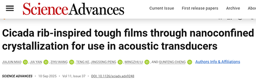 ���P�о��ɹ�����Cicada rib-inspired tough films through nanoconfined crystallization for use in acoustic transducers�����}�l���ڇ��H�ڿ���Science Advances���ϡ�Sci. Adv. 2025, 11, adx9248����