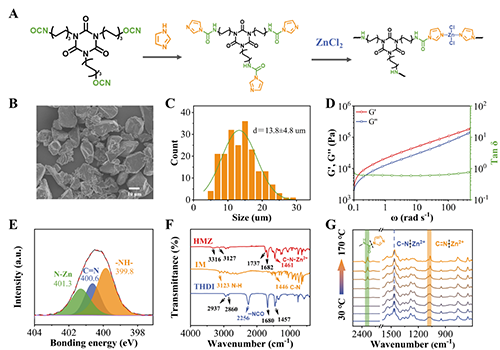 ԓ���������������������������w��Tri-HDI���c����IM����Ч��������A���ϳ������܈F���������g�w��������ZnCl?�������������I�cZn2?��λ�I�fͬ���������S���W�j����K�@�÷�ĩ�B�����ʹ��M��HMZ��ͨ�^�p�ӑB�I�fͬ���ã����H���F�ˌ���������ķ������b�����x���wϵ���ʵĜض�푑����ԣ���νM���wϵ���LЧ�����c���ټ����ṩ��ȫ�½�Q������ϵ�y�����Y�����D2���@ʾ��HMZ�ʲ�Ҏ�t���w����ò����׃��FTIR�cXPS�C���佻�����c���Լ����I��C=O, N�CH���cZn�CN��λ�I�Ĵ��ڣ�׃�ؼt����������������^�����������I���x��չ�F�����õğ�푑��ӑB��������̻������ľ��_���Ƶ춨���A��