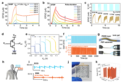 ��PBTI2g-DTCN�cCin-Cell��10:1��������r���������F������ʧ��ͻ�|���ԣ���ģ�M���ں��L�ڿ����ԣ��D4����ģ�M��ͻ�|�ČW���cӛ���^�̣�����8:3�����£���������ʧ�Ԡ�B���߂�߿猧�̓��������ԣ��m���ژ����������·�����F188 V V-1��늉����棬�����B�m����2000���92%�ķ���ݔ�������⣬ԓ�F�������PET�����ϼ�����ƽ���c��ֱOECT�Y������ͨ�^PDMS���b���F�ɴ�������z�y���Y���@ʾ����ֱOECT�ڼ����̖�z�y�о��и��ߵ���̖����ȡ��Mһ����ԓ�F꠳ɹ������Ի����φ�Ƭ����9×9��������У�81����Ԫ������ƽ���猧��71.7 ��S ��m-2��ƽ�������_143.2 V V-1��չʾ���ڴ�Ҏģ��������c����ϵ�y�еđ��Ý�����