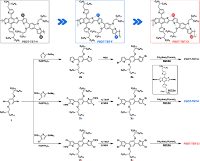 �������O(sh��)Ӌ(j��)�ϳ���ϵ��D�C�ШCA�;ۺ����o�wPBDT-TBT-X��X = H��F��Cl������A��Ԫ�Y(ji��)��(g��u)��(ji��n)���������˲�ͬ�ǹ��r(ji��)����(g��u)���i����ϵ�y(t��ng)�о����ǹ��r(ji��)����(g��u)���i������c��(qi��ng)����(du��)��朘�(g��u)������|(zh��)���A(y��)�ۼ��О��Լ�늺���ݔ���|(zh��)�е��{(di��o)�ؙC(j��)����