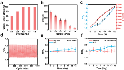 ��(j��ng)���Ժ�� PBFDO-PEG �ͺϲ��ϱ���늌��ʿ��_ 900 S/cm���� 100% ���쑪׃��늌��ʸ������� 2265 S/cm ���ϣ���(j��ng) 1000 ������ѭ�h(hu��n)���Ա��ַ�(w��n)�����ܣ��ڿ՚��Ѓ��������º�늌����Ա�����ʼֵ�� 1/5����(w��n)�����^ԭʼ PBFDO ���� 5 ����