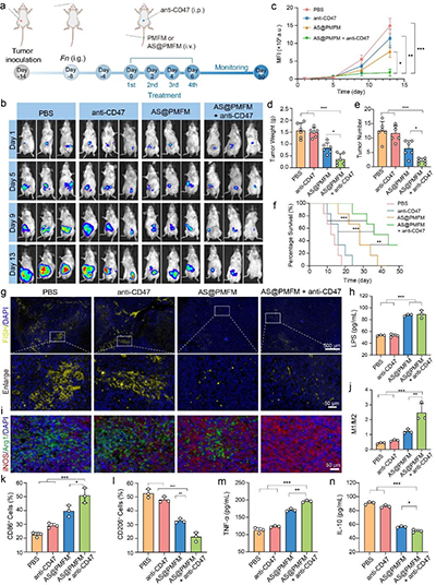 �c���y�Ŀ����ز�ͬ���@�N�{��ø�����˸߶�ᘌ��Եİ�����ԣ��܉�ͨ�^��¶�����w�錧�ă������ã��x���Ե��M���Ⱦ��M2�;��ɼ�����һ���M�뼚�����^���Ě��^�����D��{��ø��ጷų����r�F��Fe2+���������أ�AS��������Fenton�����a�������������������Ķ���Ч����Fn��ͬ�r��������ͨ�^�T�����ɼ������������{��ø�ͼ�������λ��������ø�w���_�������ľ���������@һ�о����P�I����������ͨ�^����Fn�����D�˸�Ⱦ���ɼ������������Ʊ�������ͨ�^CXCL2/LPS�S�ļ�����Mδ��Ⱦ���ɼ�����M1�͘O����ȫ���������[�������h�����canti-CD47���w��ʹ�Õr��AS@PMFM���F���ˏ���ąfͬЧ�����@�������������ί���Ч�����������[�����L�������L��С�����������