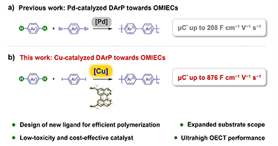 ԓ�о��_�l��Cu-DArP�������״Ό��F��OMIECs�ĸ�Ч���Gɫ�����m�ԟo�Z�ϳɣ���Ȃ��y�Z���wϵ������ɱ��͡�����С��ԭ�ӽ����Ը��ă��ݣ����H��Q��OMIECs�ϳ��е��F������ه�͏U�φ��}��߀��Y�x����C*ֵ��OMIEC�����ṩ�˸�Ч���ߡ����⣬ԓ�����ϳɵľۺ�����Ѓ��������ﰲȫ�Ժ�늻��W���ܣ�������ֲ��ʽ��������������˹�ͻ�|���ЙC늻��W���w�ܣ�OECT�����I��đ��õ춨�˻��A���о��F꠱�ʾ��δ�팢�Mһ���������w�ʹ��wϵ����չ���w�m�÷������Ƅ�ԓ�����Ĺ��I�����ã�����һ�����������ЙC�댧�w�İlչ�ṩ�µĺϳɲ��ԡ�