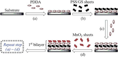 ���w�����������c������о��ˆT���û��W����ʯīϩ��PSS-GS���c�۱�����PANi���{���w�S֮�g���o��������ã��Ƃ���PSS-GS/PANi�ͺϲ����z�w��Һ��Ȼ���]��Ĥ�õ������Ե�PSS-GS/PANi�ͺϡ�����늘O���ϡ����⣬��PSS-GS�Ͷ������i��MnO2��Ƭ��Y��������Ԫ���Ծ�늽��|��ճ�Y����ͨ�^�ӌ��ԽM�b���g�ڌ�늻�Ƭ��ITO�����M�нM�b�õ��˶��ӏͺϱ�Ĥ늘O��늻��W���ܜyԇ�������Ƃ�ġ�����늘O�Ͷ��ӏͺϱ�Ĥ늘O�����иߵı���ݺ̓�����ѭ�h�������ܣ����кܺõđ���ǰ����