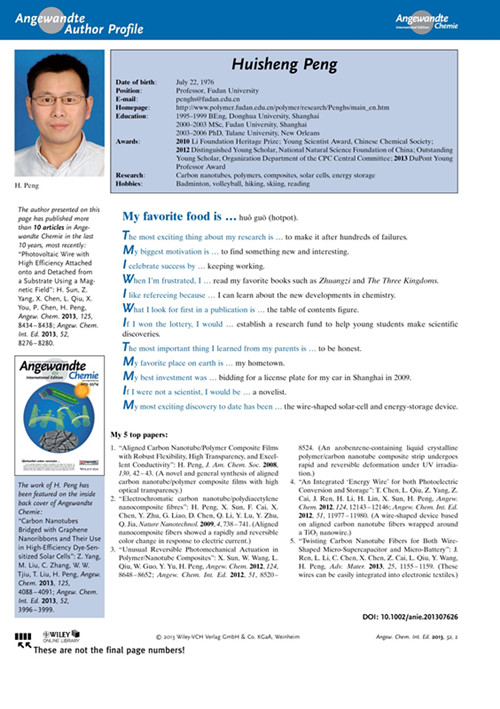 ����������͵���W�߷���ϵ���ۄٽ�����ͨӍ������Angew Chem Int Ed �ϰl����10ƪՓ�ģ�����2011��2ƪ��2012��3ƪ��2013��5ƪ���@ЩՓ�Ķ�α�ԓ�ڿ��x��VIP Paper��Hot Paper�Լ�����Փ�ģ�����α�Nature�ӿ����о����c�����