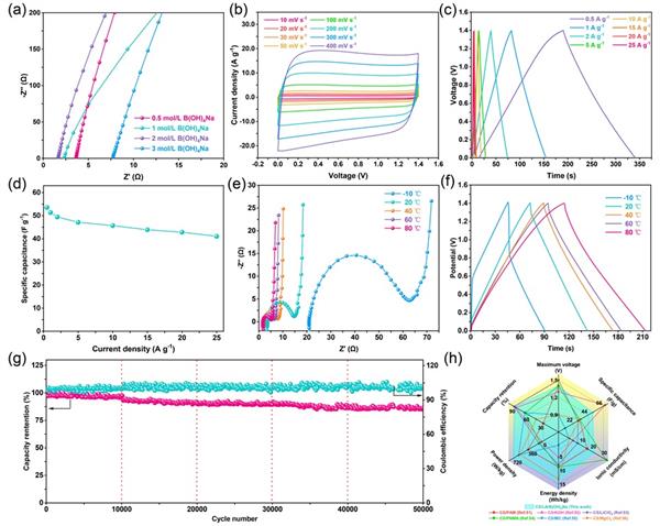 圖2 CS-LA-B(OH)4Na凝膠電解質的基礎電化學性能