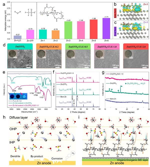 圖1. CLE的合成及其對鋅陽極/電解質界面化學調控示意圖。