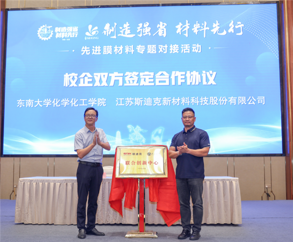 專題活動前還舉辦了“制造強省,材料先行”斯迪克專場服務對接活動。在斯迪克公司的活動現場,聚焦斯迪克公司在膜材料領域的核心需求,為相關的供需企業、高校院所、科研機構等創新主體搭建精準高效的信息交流與合作對接平臺。東南大學化學化工學院與江蘇斯迪克新材料科技股份有限公司經充分溝通達成了合作意向,并簽訂校企合作協議,共建聯合創新中心和江蘇省重點實驗室。