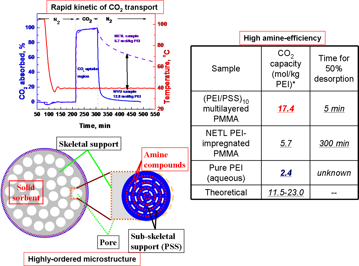 of nanolayered sorbent and its high amine-efficiency for CO2 capture
