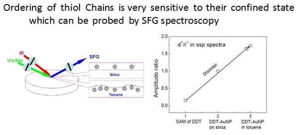 關鍵字:和頻振動光譜; 金納米粒子; 正十二硫醇; 自組裝; 氣液界面