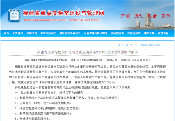 福建省皮革綠色設(shè)計(jì)與制造重點(diǎn)實(shí)驗(yàn)室2023年度開放課題申請(qǐng)指南