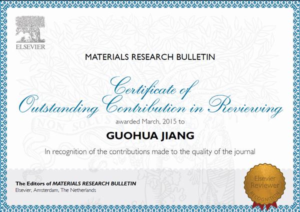 近日,江國(guó)華教授獲Powder Technology, Materials Research Bulletin等雜志論文評(píng)閱獎(jiǎng)!