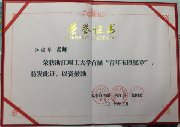 獲2014年首屆浙江理工大學五四青年獎章