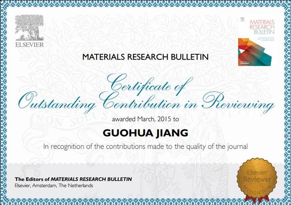 Outstanding Contribution in Reviwering From Materials Research Bulletin