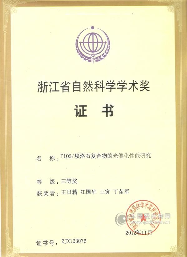 課題組研究成果獲2012年浙江省自然科學學術獎-三等獎