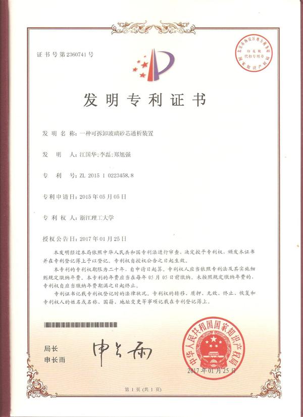 本發明涉及一種可拆卸玻璃砂芯透析裝置,具體包括備液罐、上、下儲液罐、透析罐和集液罐五部分組成。上儲液罐頂部開設有備液罐和進液開關,下儲液罐下部開設有出液口、減壓口和集液罐,儲液罐和透析罐的上下部各通過一個可拆卸的接口連接,以便拆卸和清洗。本發明的透析裝置,具有結構簡單,使用成本低,易于拆卸,便于清洗滅菌,透析過程中受環境影響小,安全可靠,適合于高分子溶液、凝膠等材料的規模化透析生產,并具有可調控透析壓,可實現平穩、快速的動態透析。