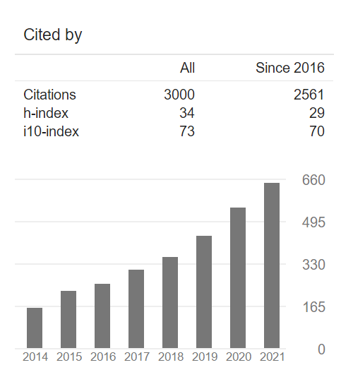 截止2021年10月23日,龔老師的論文被引用次數達到3000次,H因子為34!