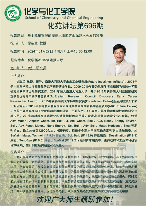 南澳大利亞大學(xué)未來工業(yè)研究所徐浩蘭教授訪問我校,并做了“