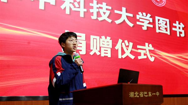 平湖微瀾,霜葉正紅。2021年12月4日,華中科技大學(xué)圖書捐贈儀式在我校行政報(bào)告廳成功舉行,華中科技大學(xué)本科生院副院長、招生辦公室主任劉紅軍、學(xué)生工作處副主任、恩施招生組組長吳疆鄂、化學(xué)與化工學(xué)院教授、博士生導(dǎo)師龔江、本科生院招生辦胡濤老師、質(zhì)量辦羅姍老師、巴東一中副校長譚元富、高一年級主任馬海林、高二年級主任譚志永等出席儀式。