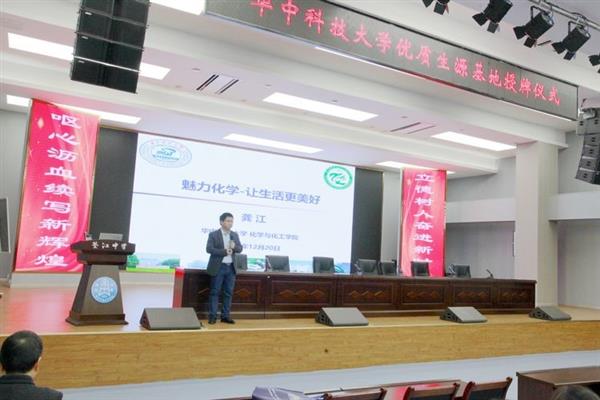 12月20日下午,華中科技大學(xué)優(yōu)質(zhì)生源基地授牌儀式在墊江中學(xué)學(xué)術(shù)報(bào)告廳隆重舉行。華中科技大學(xué)化學(xué)與化工學(xué)院教授、博士生導(dǎo)師龔江老師,華中科技大學(xué)化學(xué)與化工學(xué)院兼職輔導(dǎo)員孫健康老師,墊江中學(xué)黨委書(shū)記、校長(zhǎng)黃波出席了本次授牌儀式。我校高一、高二、高三年級(jí)強(qiáng)基班的全體師生參加了本次活動(dòng)。授牌儀式由教師發(fā)展中心楊美中主任主持。