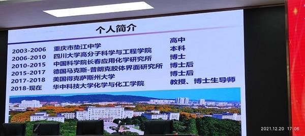 龔江教授先講述了化學(xué)的內(nèi)涵和廣泛的應(yīng)用及其光明的前景,然后介紹了華中科技大學(xué)的學(xué)院沿革、學(xué)科優(yōu)勢(shì)、師資力量、專業(yè)就業(yè)和升學(xué)情況。